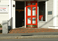 Fully accessible through front door; but steps down to dressing rooms and lower selling floor.